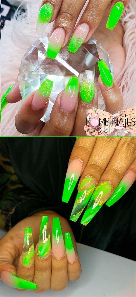 acrylic nail designs neon green